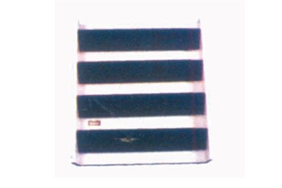 Step centering in 1.6 m.m. Thk. Sheet supported by 30 m.m. X 5 m.m. MS flat, self-locking arrangement in 75 x 40 m.m. Channel. Side plate for fixing on wooden planks as side support. Adjustable size min: min. 900 to 1500 and height up to 200 m.m.