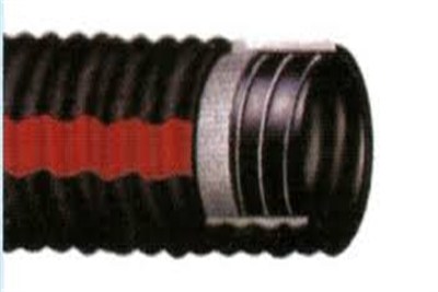 Application: water suction and discharge in industrial and construction services. Construction: Natural Rubber tube. textile reinforcement & steel wire helix embedded between the layers. Abrasion and whether resistant cover