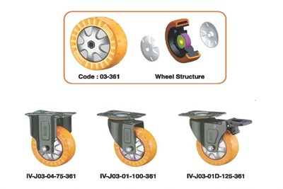 Orange colour PU caster wheel for trolleys, conveyors and material handling equipment.