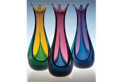 We using Zeitz' layering technique of painting and drawing with metal oxides on a base glass and adding stained glass on top. A second firing with a low melting top glaze adds more dimension.