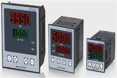 Digital Timers Dual output UTR-1244, 2244, 4244 Dual 7 Segment LED Display Four Programmable mode – 1) FWD /REV 2) CYCLIC 3) COMBINATIONAL 4) Sequenctial Timer range – Sec/Min/Hours 2 output (Relay or SSR)